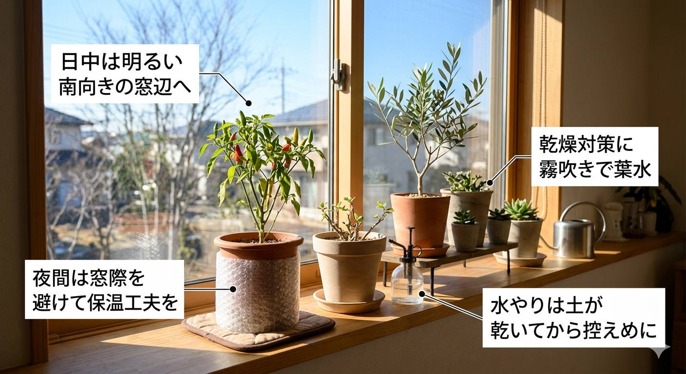 具体例2:冬の間の室内での置き場所と水やりのコツ