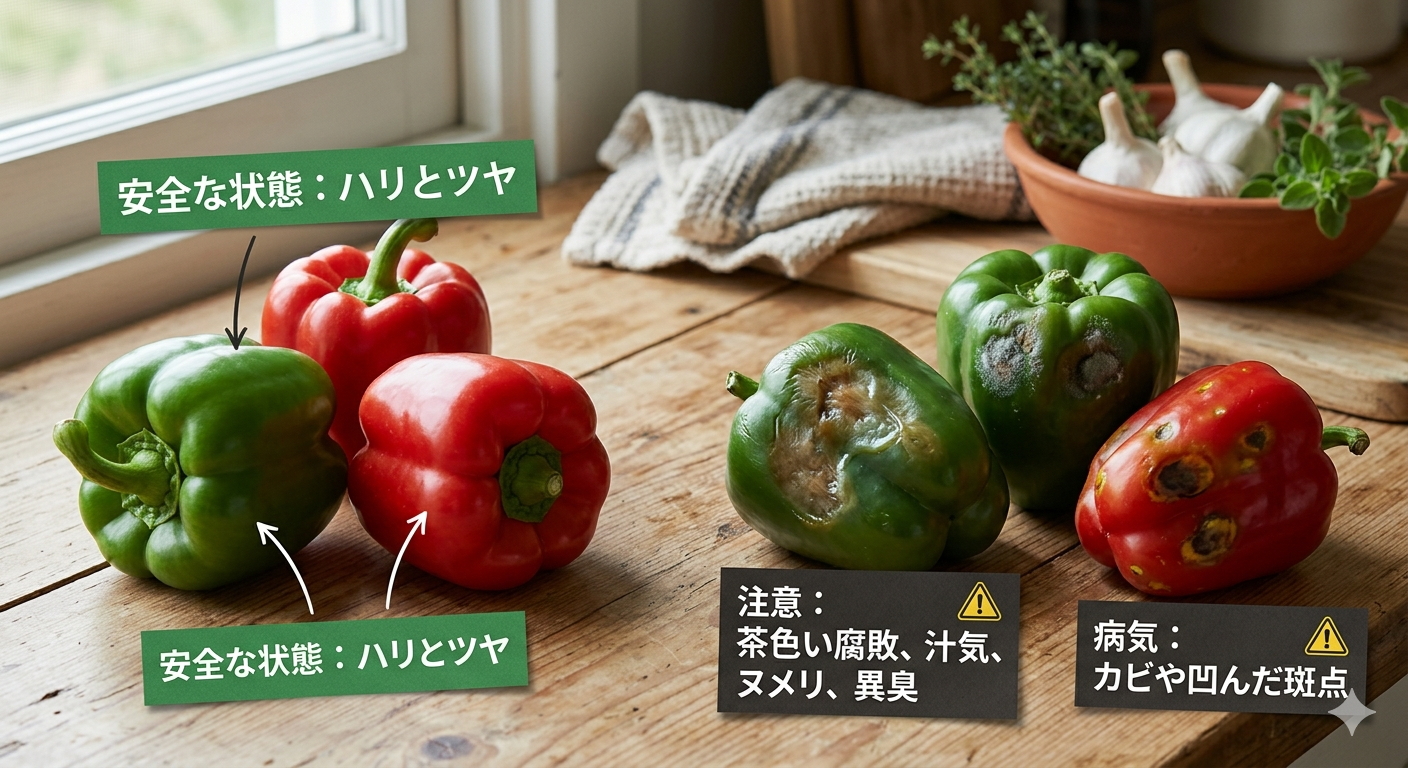 「赤くても食べられるのはわかったけれど、本当に腐っていないか見分ける自信がない」そんな不安を感じるのも当然ですよね。家族の口に入るものですから、安全第一で考えたいものです。ここでは、安心して食べられる赤いピーマンと、残念ながら処分した方がよい危険なピーマンの「見分け方のポイント」をわかりやすく整理しました。