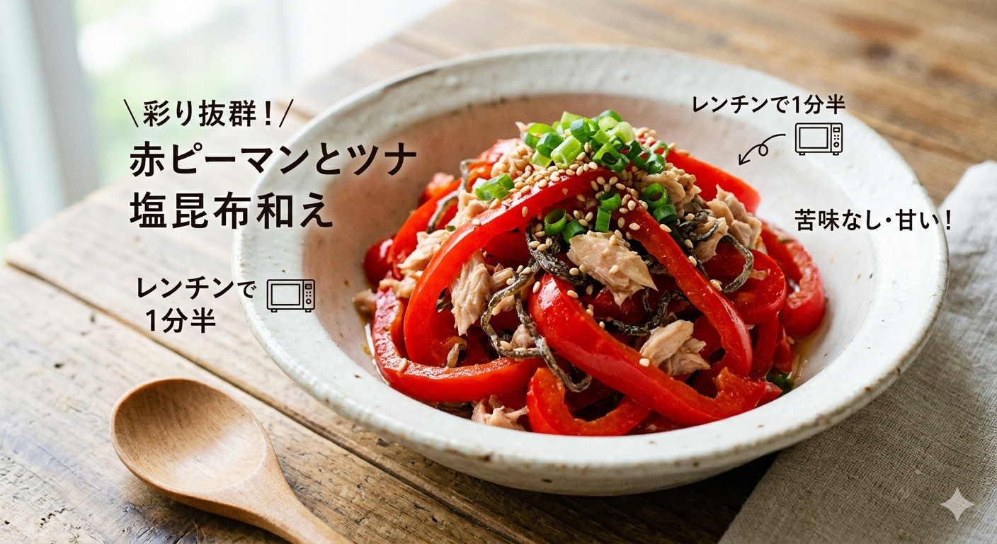 具体例2:彩り抜群!「赤ピーマンとツナの塩昆布和え」