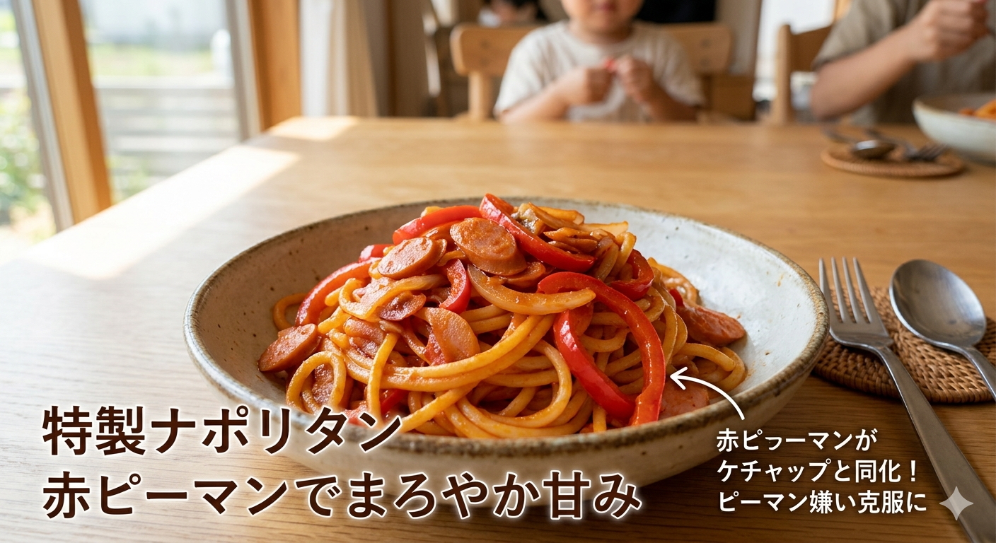 「ピーマンが入っているのに気づかずに全部食べちゃった!」なんていう嬉しいサプライズが起こるかもしれませんね。ケチャップの酸味と赤ピーマンの自然な甘みが絶妙にマッチして、ワンランク上のまろやかなナポリタンに仕上がります。
