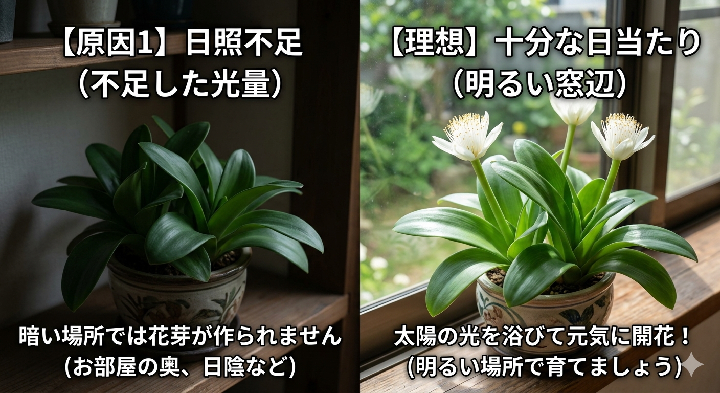なぜマユハケオモトの花が咲かないの?葉っぱばかりになる4つの原因