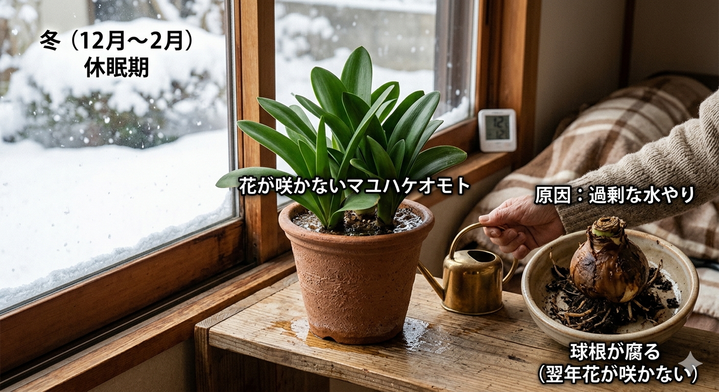 この期間は、だいたい12月から2月頃の寒い時期にあたります。人間も、寒い冬は暖かいお布団にくるまってゆっくりお休みしたいですよね。マユハケオモトも同じで、この時期はそっと休ませてあげることが一番のお世話になるんです。