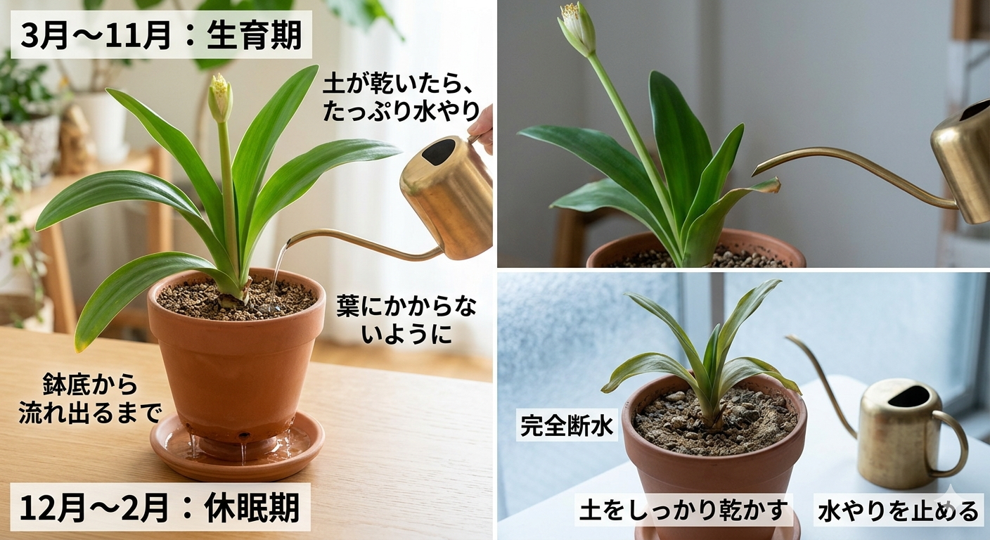 | 季節の区分 | 期間の目安 | 水やりのポイント |