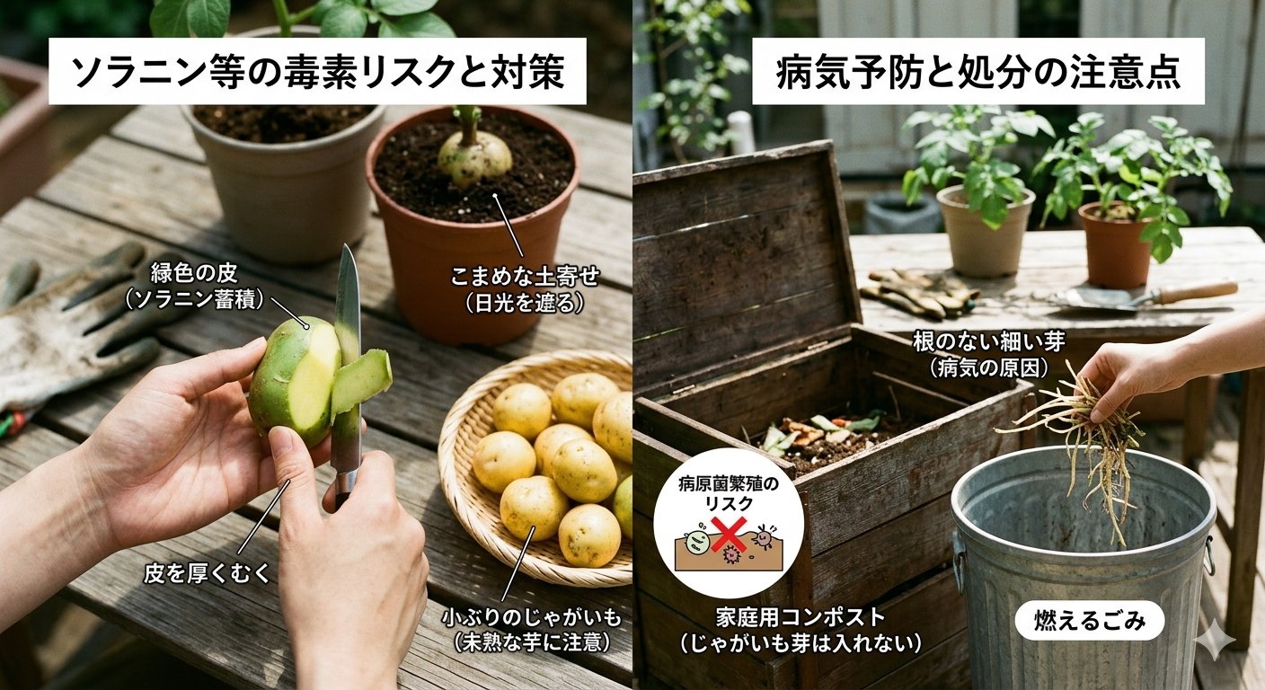 ここまで、芽かきした芽の素晴らしい可能性についてお話ししてきましたが、実は知っておくべき大切な注意点もいくつかあります。せっかく育てたじゃがいもを、家族みんなで安全に美味しくいただくために、必ず確認しておきたいポイントをまとめました。