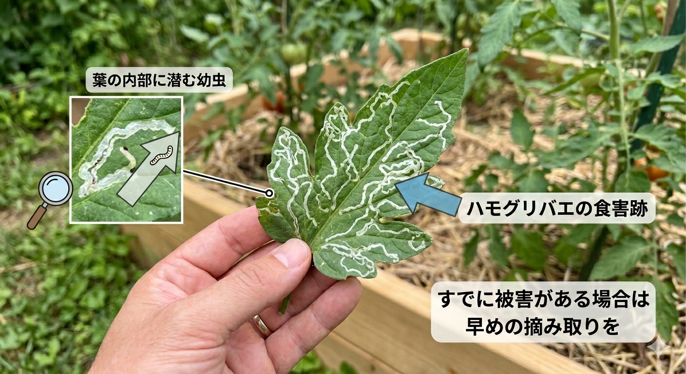 もし葉っぱに白い線を見つけたら、迷わずにその部分を指で潰すか、葉っぱごと早めに摘み取ってしまうのが一番確実と言われています。