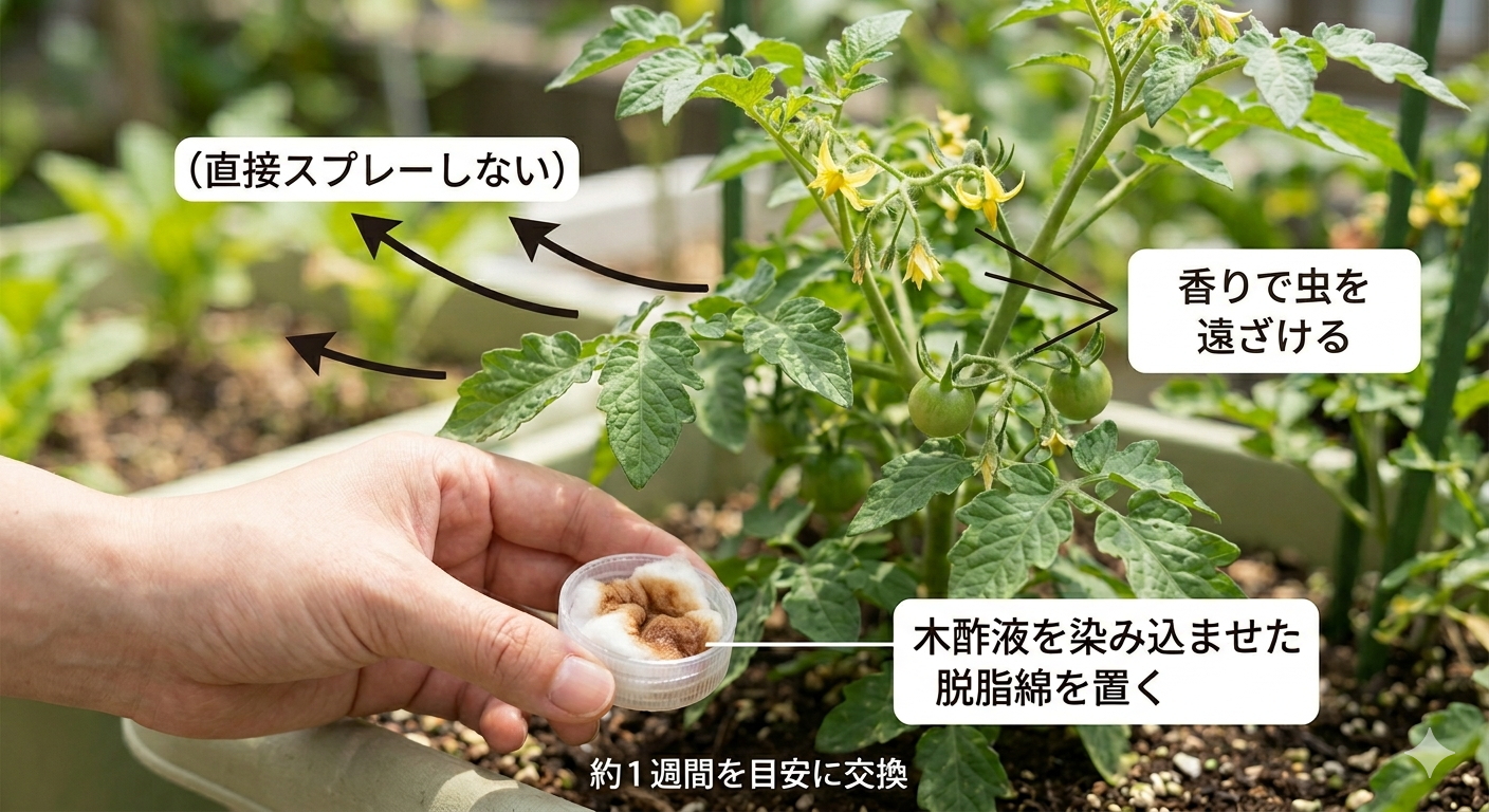 A: 補助的な役割としては使えることもありますが、木酢液のような特有の強い燻製臭がないため、虫を遠ざける効果は少し穏やかになるかもしれませんね。