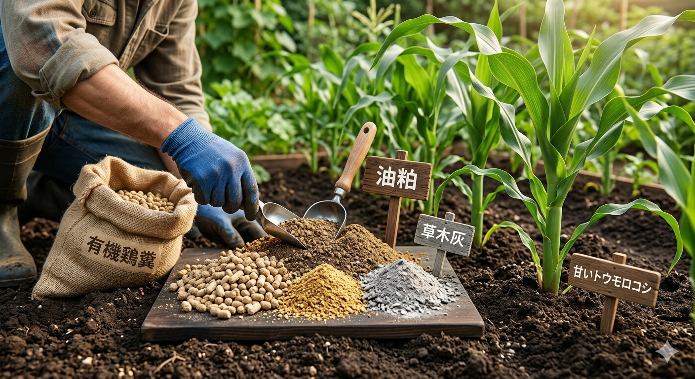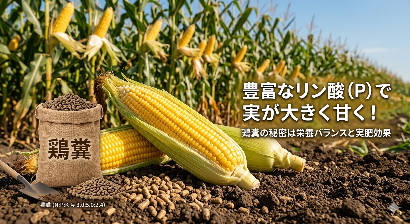 このように、トウモロコシが求めている栄養をピンポイントで補給できるのが、鶏糞の大きな魅力なんです。「なるほど、だからトウモロコシと相性が良いんだ!」と納得していただけたのではないでしょうか。