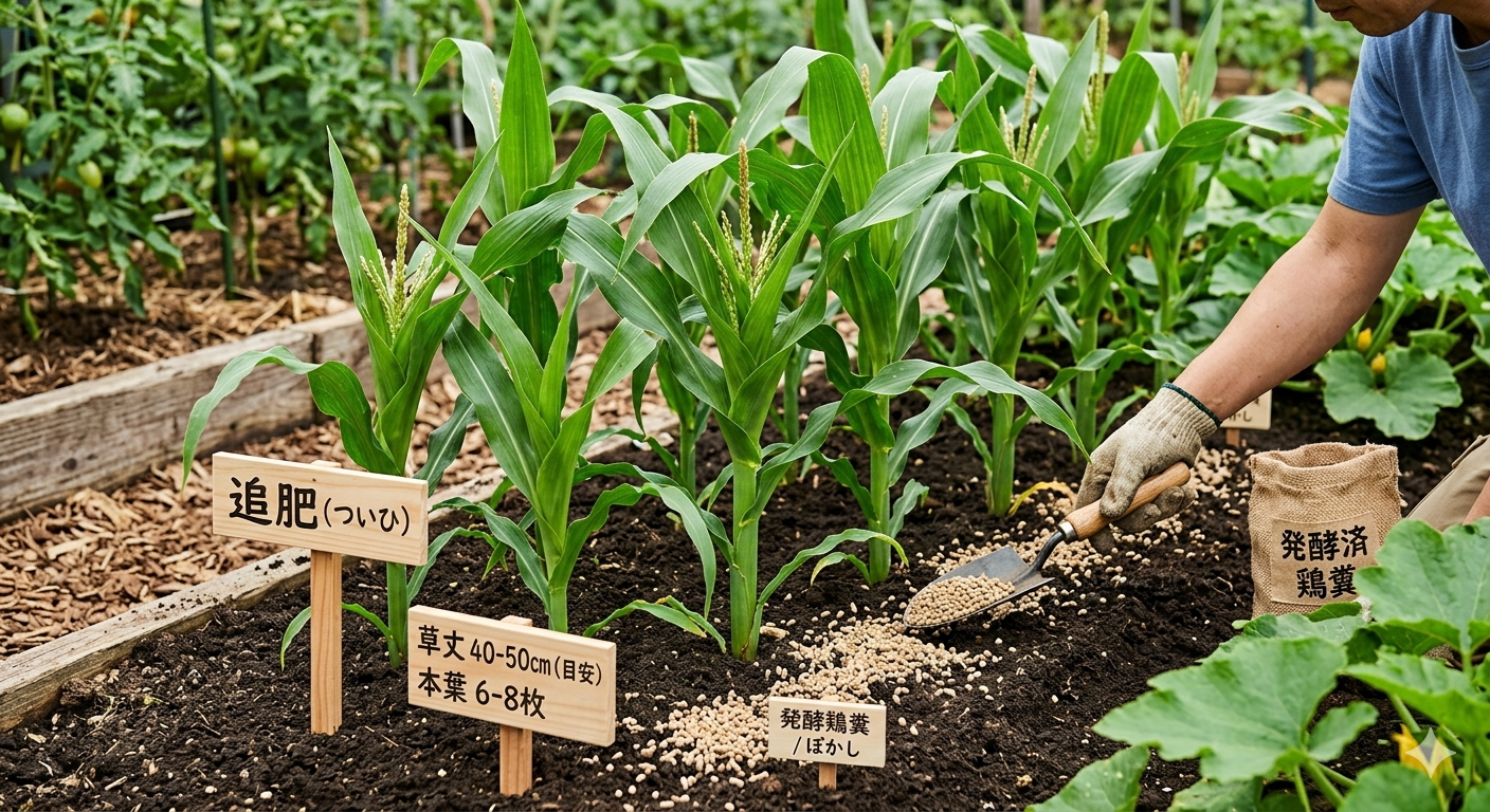 もしかしたら、天候に悩まされたり、虫がやってきたりと、ちょっとした試練もあるかもしれません。でも、あなたが愛情を込めて、鶏糞という自然の恵みを与えて育てたトウモロコシは、きっと今までで一番美味しく感じられるはずです。