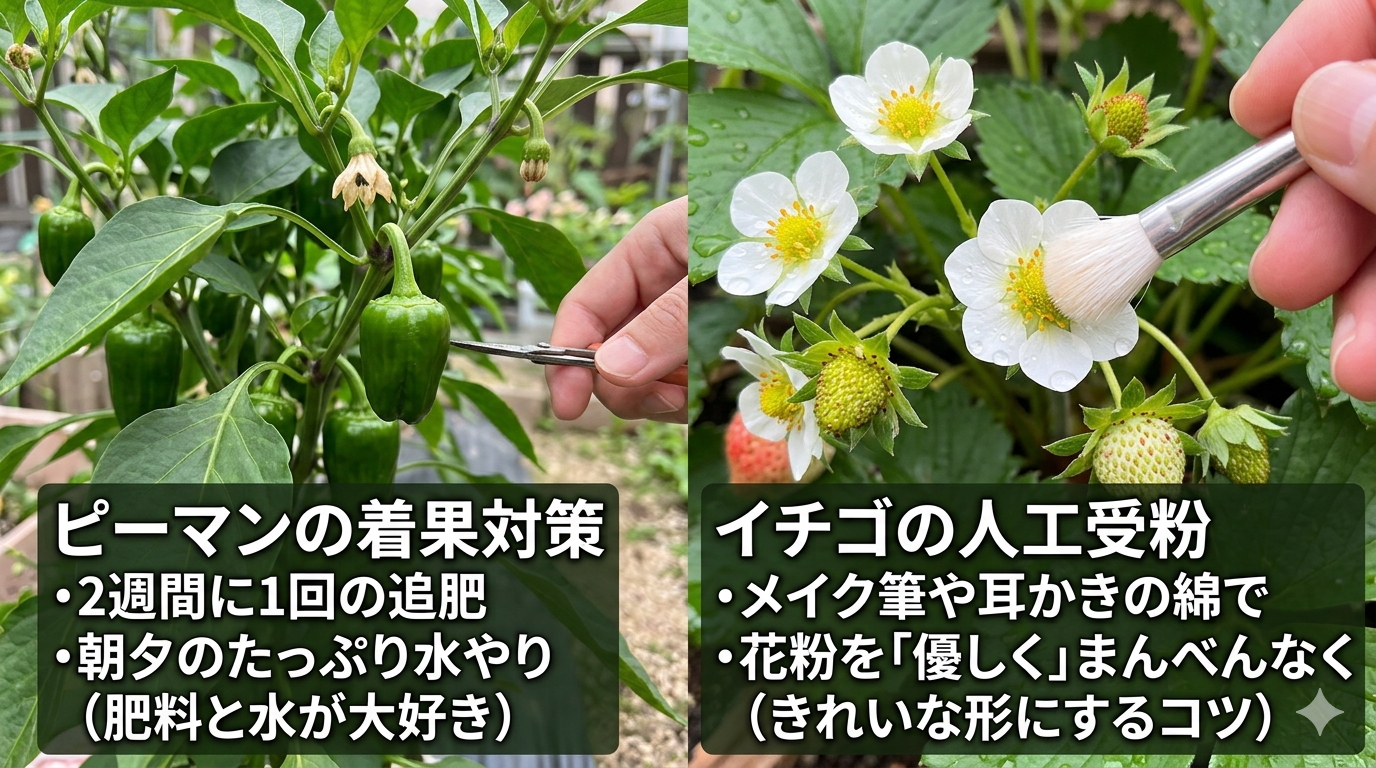 ピーマンやイチゴの着果を成功させるための具体的な裏技とは?